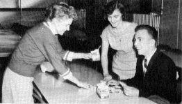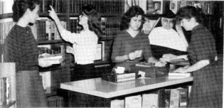 Sister Regina, school librarian, appreciates the help of Library Aides Elaine Mathia, Mary Hemmen, Irene Kiwak, and Janice Roach.