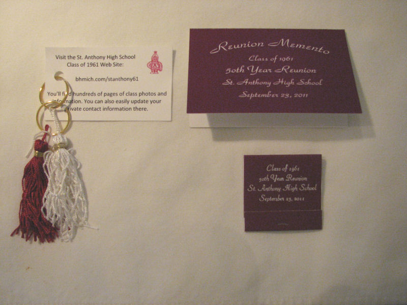 Grads had a few mementos to take home. The tassles and were provided and assembled by Judy (Novak) Kowich. Kathy Lauer provided the place cards and mini-notepads