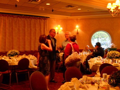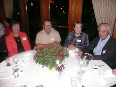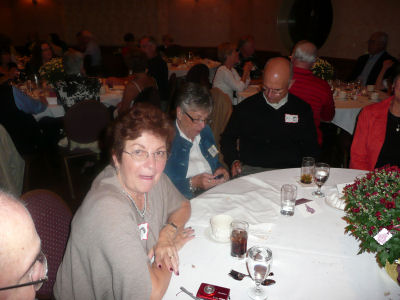 Joe McClellan presented Helen and Jerry Gagnon (SAH ' 39) with one of the table floral arrangements