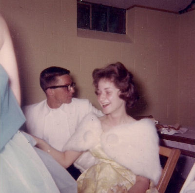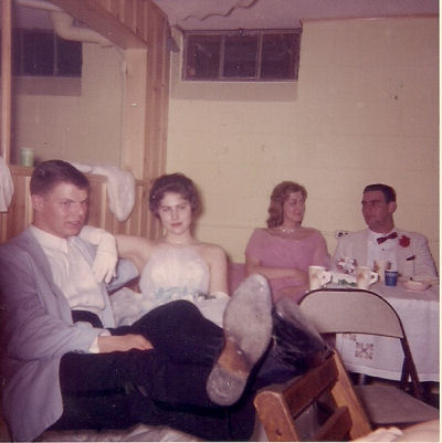 ![]() Picture 20: Per Pat (Gosselin) Niedstedt Event=Somebody's basement after Senior Prom and after dinner and before day at Kensington Park, Date=May 12-13, 1961, Individuals= Chuck Shubnell, Penny Rznewicki, Pat Gosselin and boyfriend Jim Reeves |