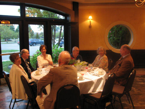 LEFT FRONT TO RIGHT: Greg Nowakowski, Ron Greb, George Dubro, Dave & Nanette Davis, Karen Pettke standing Ann and Joe McClellan, Donna (Wieczorkowski) Jeske |