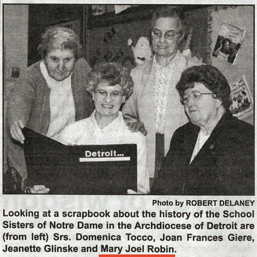 The following photo appeared in the November 7, 2003 issue of The Michigan Catholic. It accompanied an article about the School Sisters of Notre Dame who celebrated the 170th anniversary of their order on October 24. The four nuns shown are the only local members of the SSND in the Detroit area.